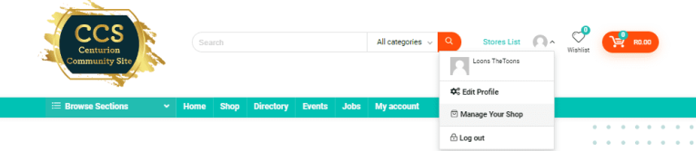 1. When logged in click on the drop down menu on your profile next to “Stores List” and click on “Manage Your Shop”. This will take you to your Vendor Dashboard.
