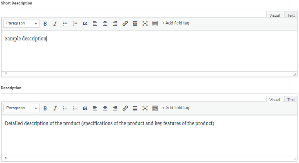 Enter a more in-depth description of your product in the “Description box”. You can add that your product is hand made or a specific colour, you can even add some key features of your product. It is entirely up to you on how much information you would like to add about your product. The more information the better. (this will appear in the description field underneath the product listing)